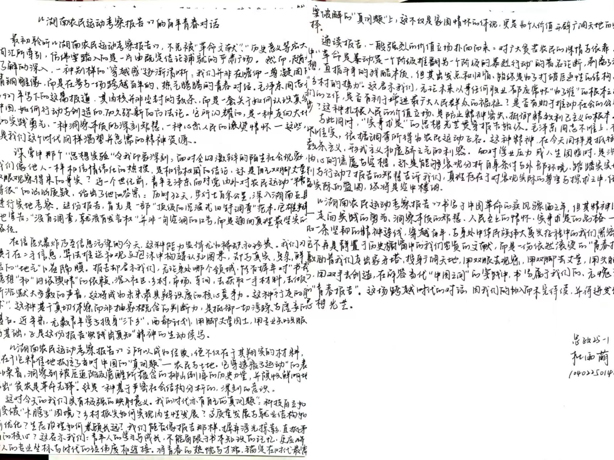 课程现场:本课程以历史语境—文本解读—当代价值—实践转化四维框架,精讲《湖南农民运动考察报告》。回顾1927年革命背景,明晰写作意义;精读文本,深挖群众立场、调查研究、实事求是精髓,辨析立场分歧;结合基层治理、乡村振兴阐释当代价值,通过互动研讨推动青年从读懂经典到活用思想。