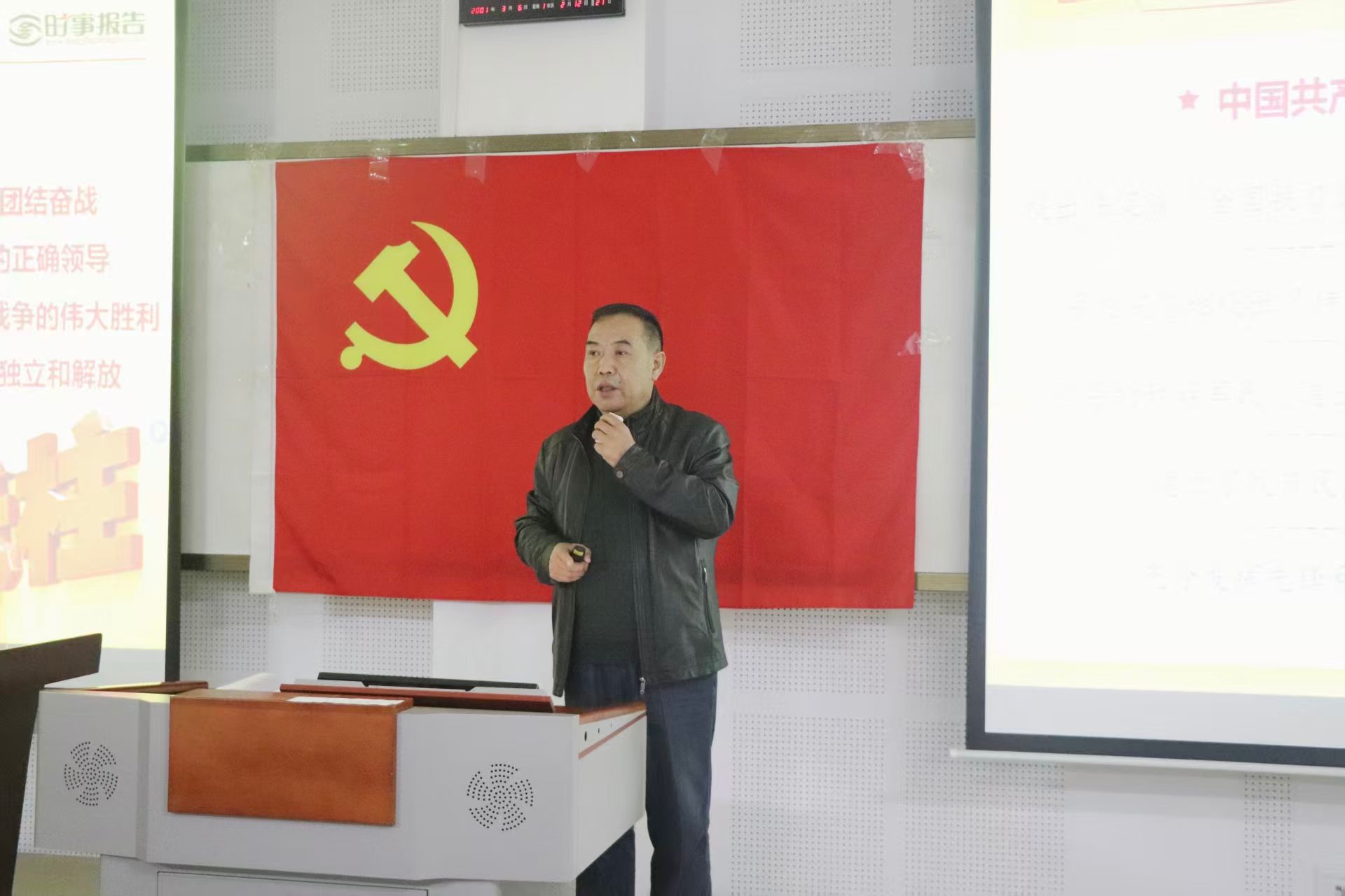 党课围绕“铭记历史,正义必胜”“民族壮举,浓墨重彩”“精神丰碑,永不磨灭”“珍爱和平,开创未来”四个篇章系统展开。