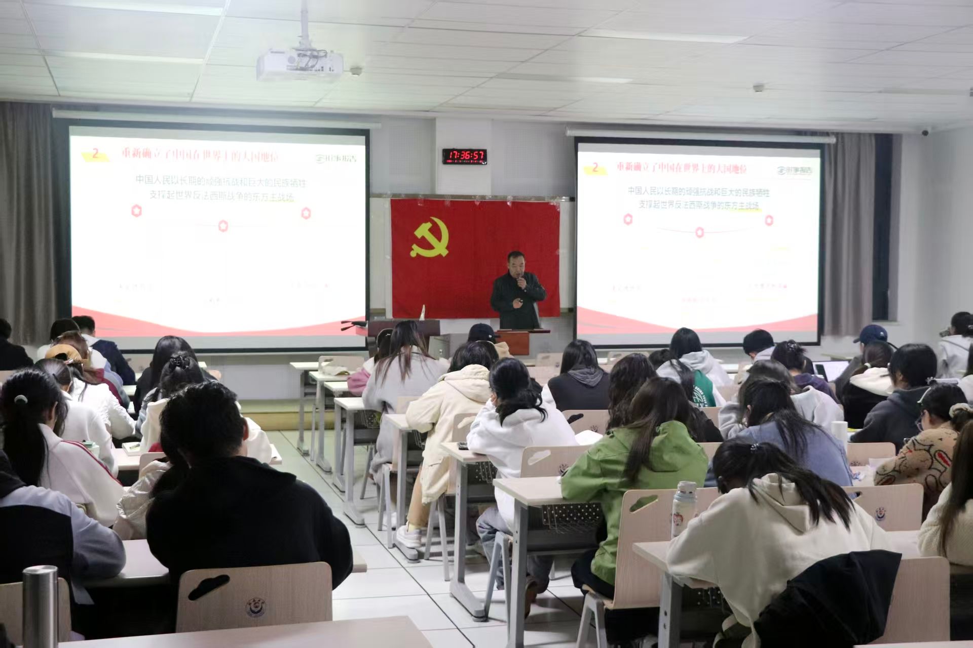 为从百年党史中汲取奋进力量,进一步深化入党积极分子的理想信念教育,2025年10月16日,马克思主义学院、外国语学院、历史文化学院联合举办的第67期入党积极分子党课培训第四讲在外国语学院211教室顺利开讲。本次课程特邀马克思主义学院党委书记张彬老师担任主讲,以《纪念抗战胜利,坚定民族信念》为主题,为全体学员带来一堂内涵丰富、思想深刻的党史教育课。