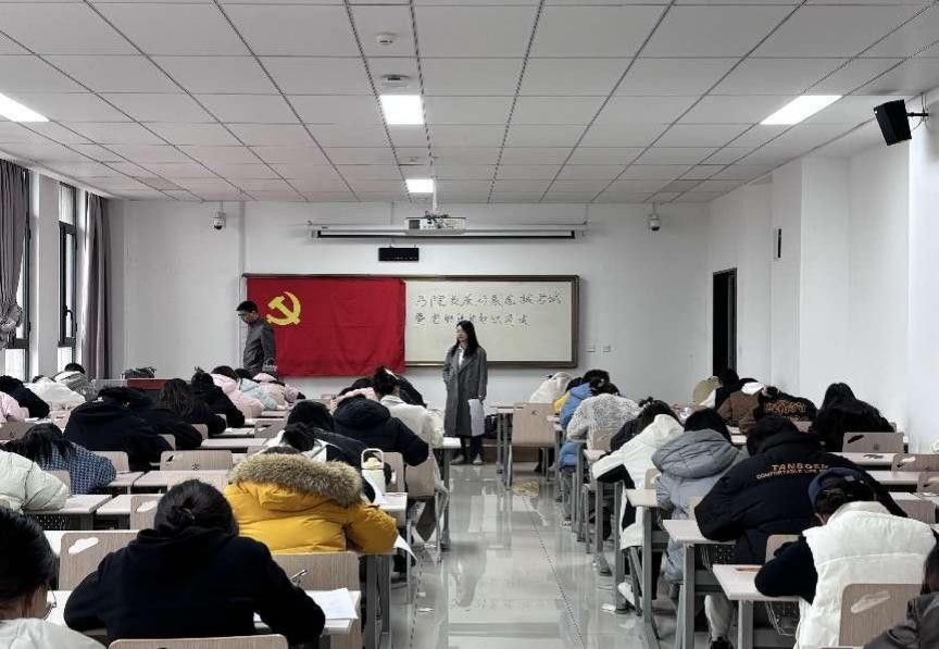 选拔考试由党委副书记赵海龙、党委组织员苗玉园监考。考试聚焦党的基本理论与最新政策方针,全面检验考生的理论储备与政治素养。考场上,考生们态度严谨、作答认真,既展现出扎实的理论功底,也彰显了对党的忠诚追求,真正实现“以考促学、以学提质”,进一步夯实了向党组织靠拢的思想理论根基。