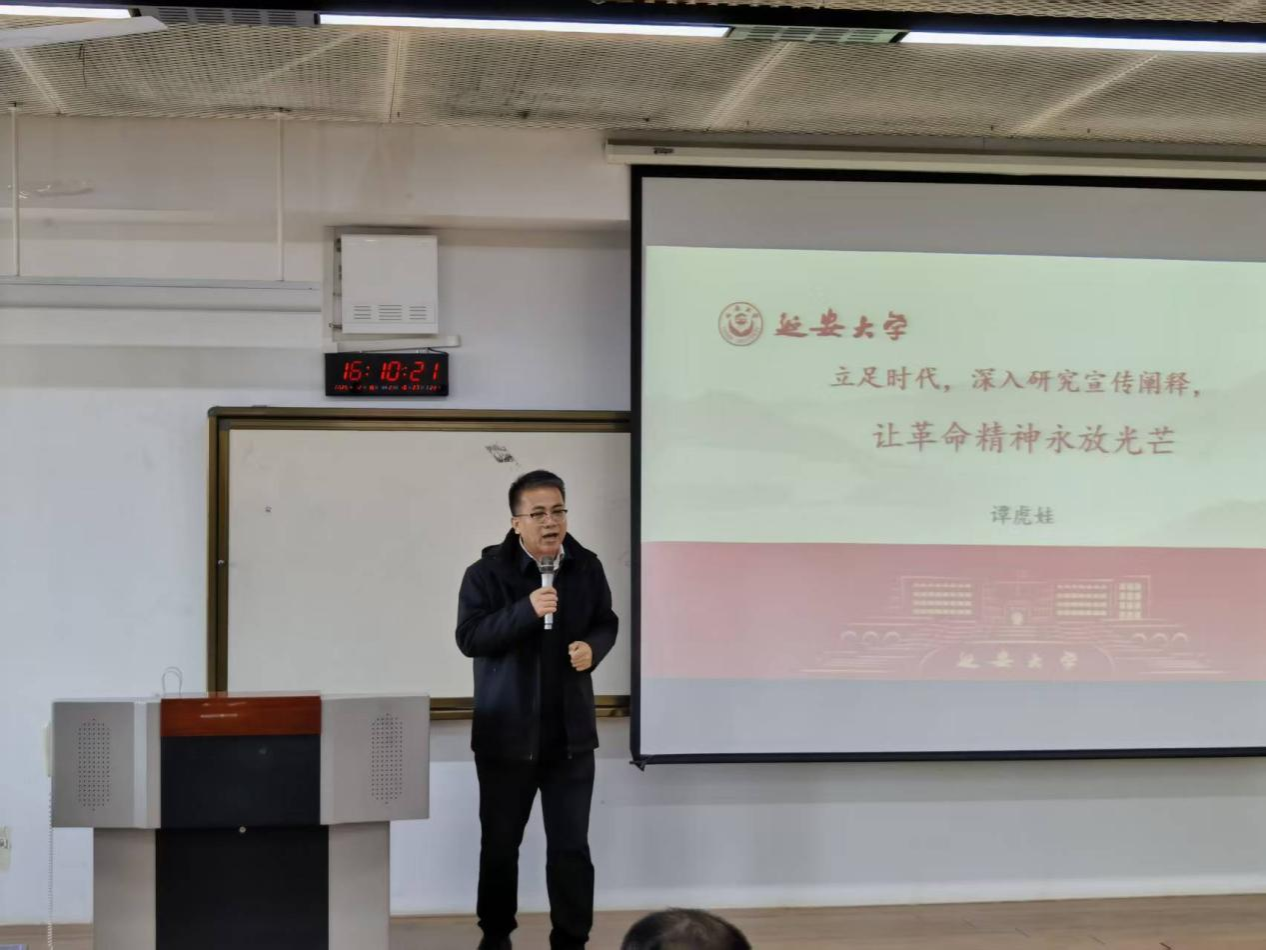 12月16日下午,我校副校长谭虎娃教授在新校区2号教学楼第三阶梯教室为我校马克思主义理论专业博士硕士研究生、政管学院政治学专业与哲学专业研究生作题为“立足时代,深入研究宣传阐释,让革命精神永放光芒”的学术报告会。马克思主义学院与政管学院部分教师参加了报告会。