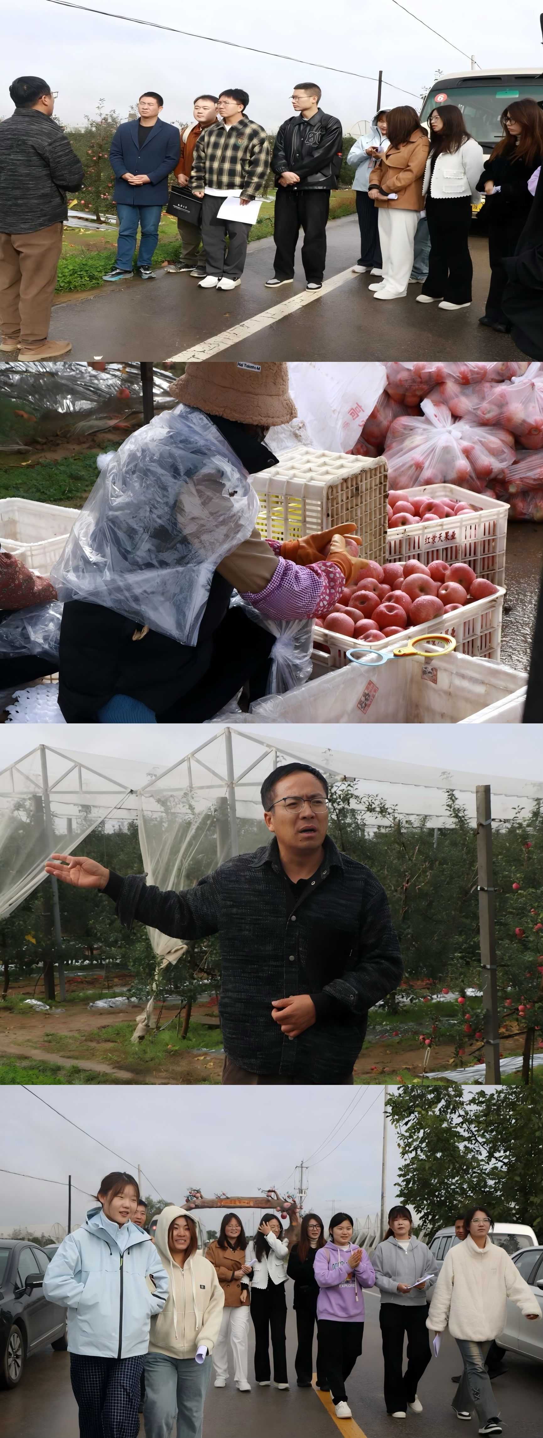 17日上午,调研团队首站抵达被誉为“中国苹果第一村”的洛川县永乡镇阿寺村。师生们深入果园,通过面对面访谈、问卷调查等形式,实地了解当地苹果种植产业的发展历程、经营模式、技术应用以及品牌建设情况。村民们热情分享了通过发展苹果产业实现增收致富的历程,也表达了对品牌建设、科技支持和市场拓展的期待。通过实地调研,师生们深切感受到“小苹果”不仅是品种改良、技术创新、品牌塑造、市场拓展的完整产业链,更承载着村民的致富梦,彰显着乡村振兴的宏大战略。