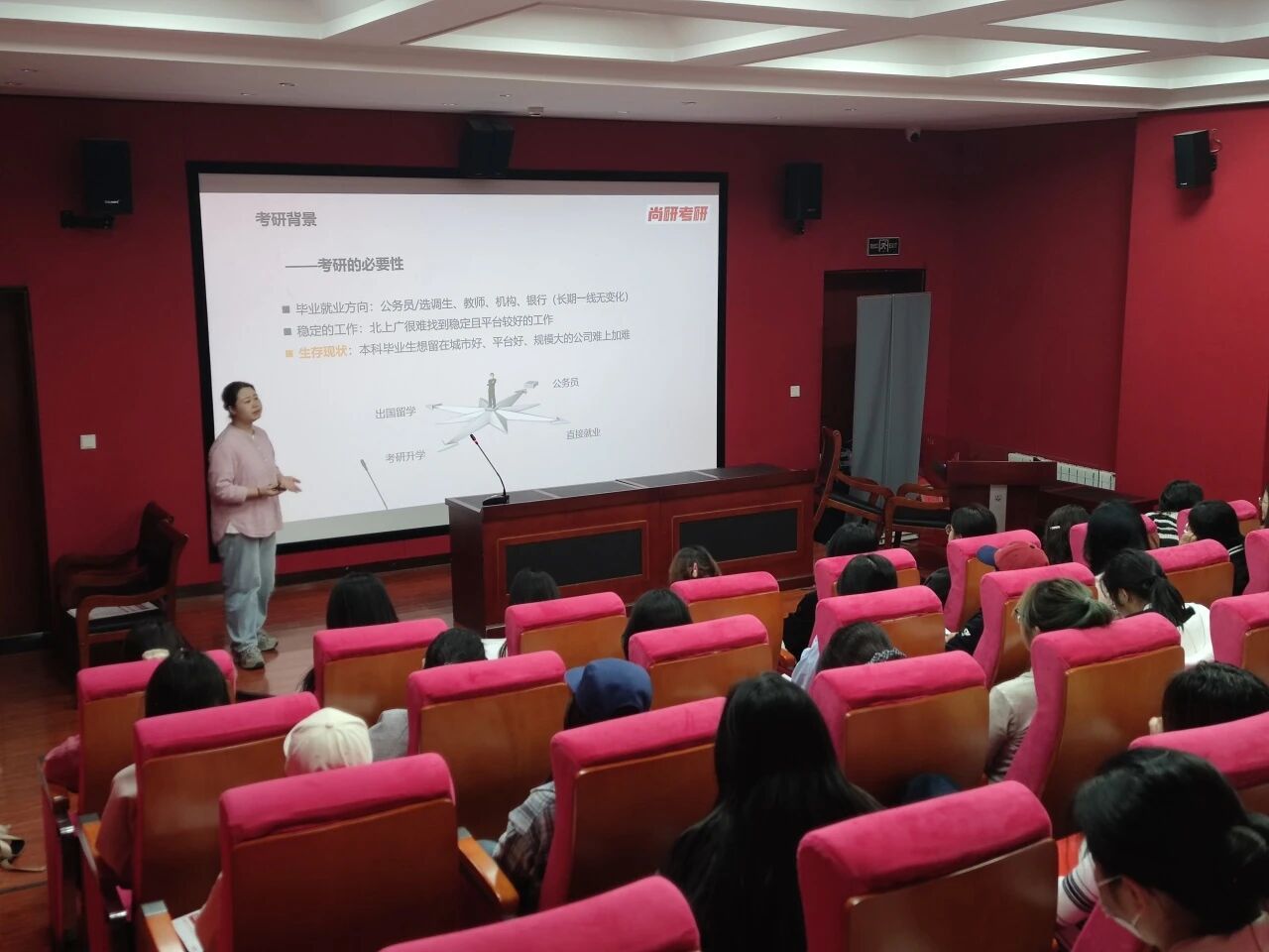 为切实帮助同学们备战考研,我院在本次分享会中特邀尚研考研赵兰兰讲师。赵老师围绕考研关键环节展开深度解读,并针对专业选择、备考规划等核心问题,为同学们提供了极具实用性的考研指导。