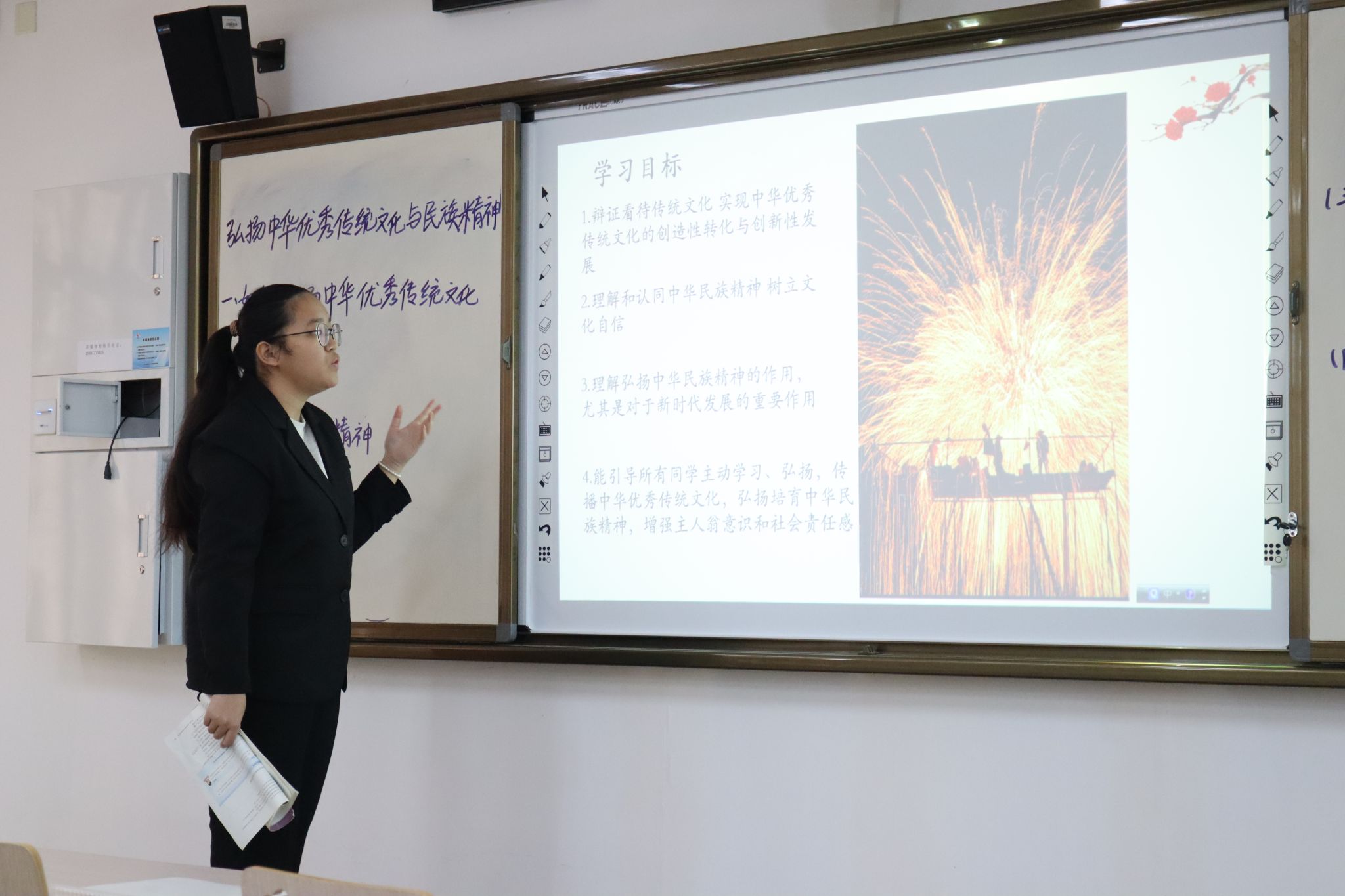 活动前,按照规则和程序将班级同学分为12个小组,12名公费师范生分别担任组长。在组长的带领下,组内同学分工合作,从初高中思政课课程中选定了教学内容,并针对教学目标设定、教学重点拆解、教学素材准备、板书逻辑设计、教学流程规划等进行了为期两周的反复打磨,最终每组选定1名成员代表参与比拼活动。